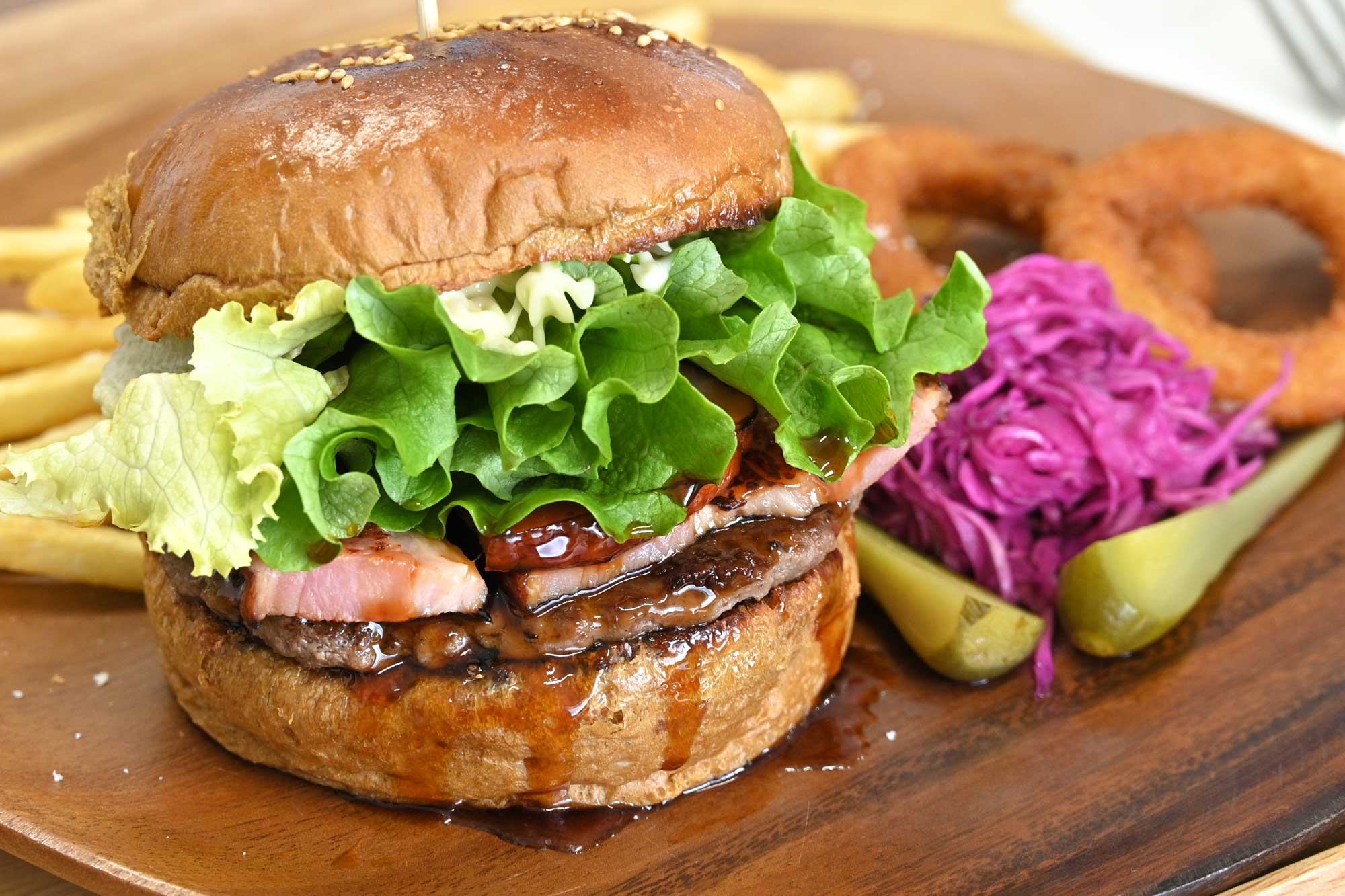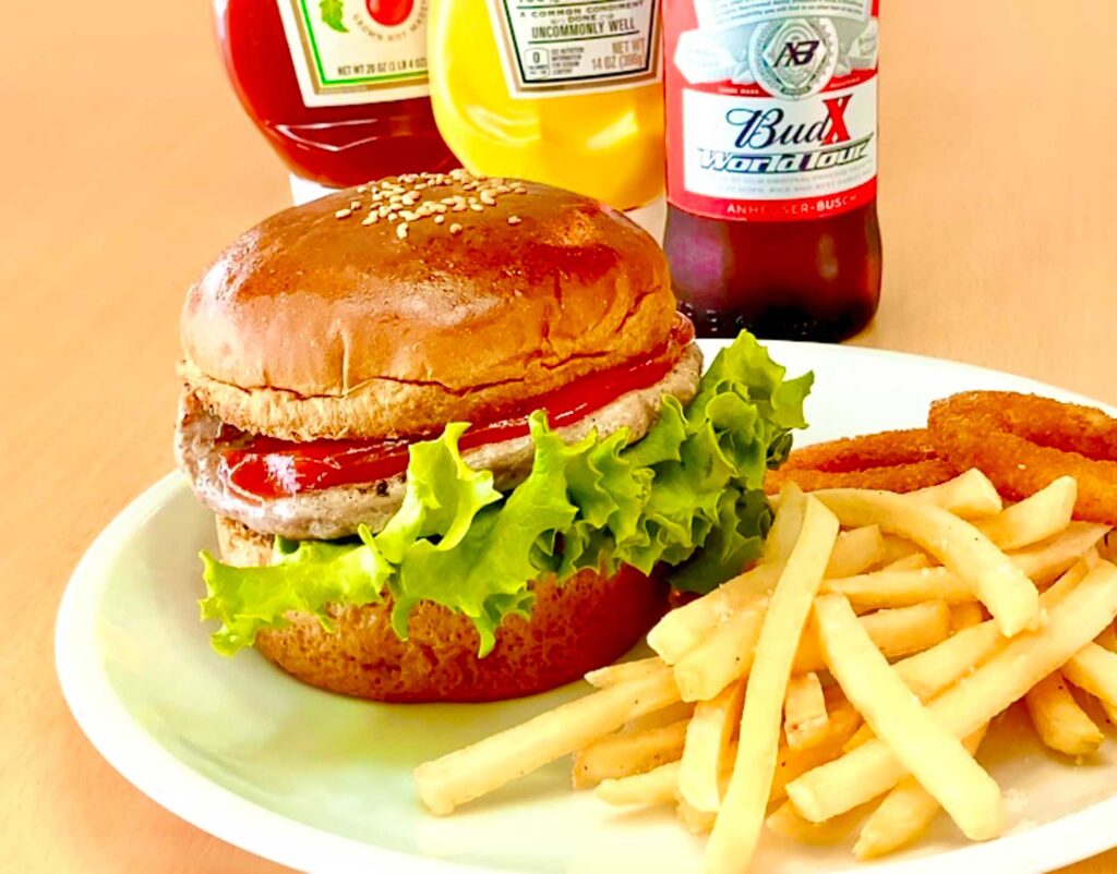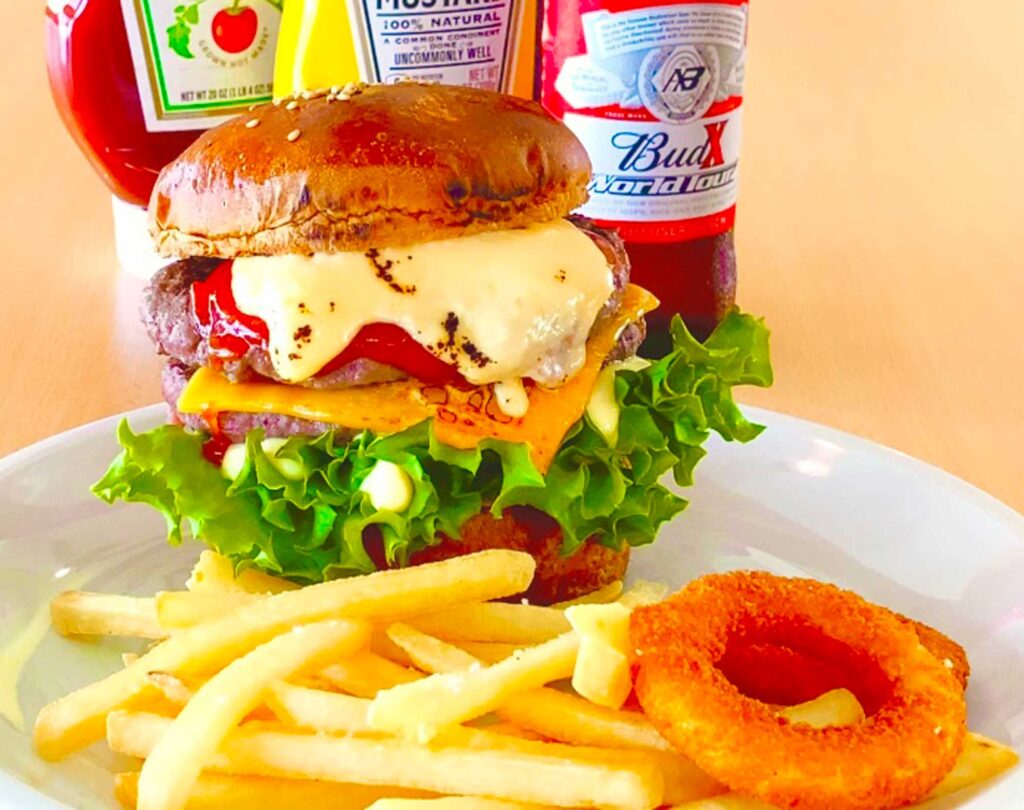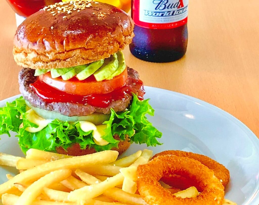 ホテル併設のふわりcaféでは、徳之島の素材を生かしたバーガーやドリンクをご提供。キッズスペースも完備しているため、お子様連れのお客様も安心してお過ごしいただけます。